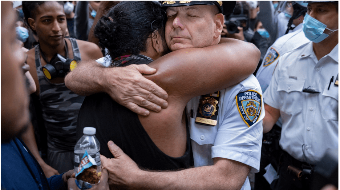 Some police officers are protesting too and are walking with peaceful protesters.
